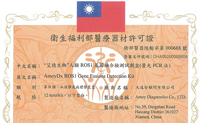 喜訊!艾德生物ROS1試劑盒中國臺灣獲批!