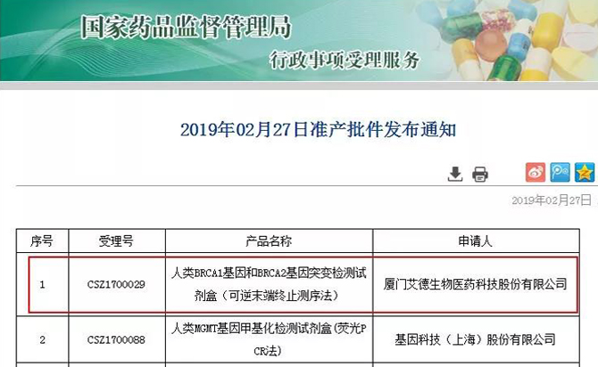 艾德生物BRCA NGS檢測產(chǎn)品(維汝?。┱将@批上市