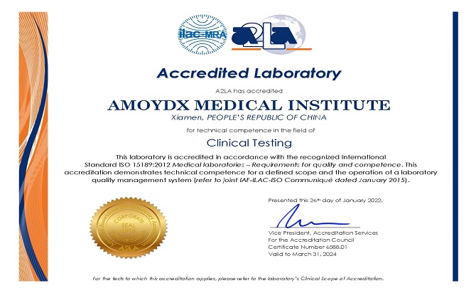 近日,艾德生物旗下廈門艾德醫(yī)學(xué)檢驗(yàn)所獲美國(guó)實(shí)驗(yàn)室認(rèn)可協(xié)會(huì)(American Association For Laboratory Accreditation,簡(jiǎn)稱“A2LA”)頒發(fā)的ISO15189認(rèn)證證書(shū)
