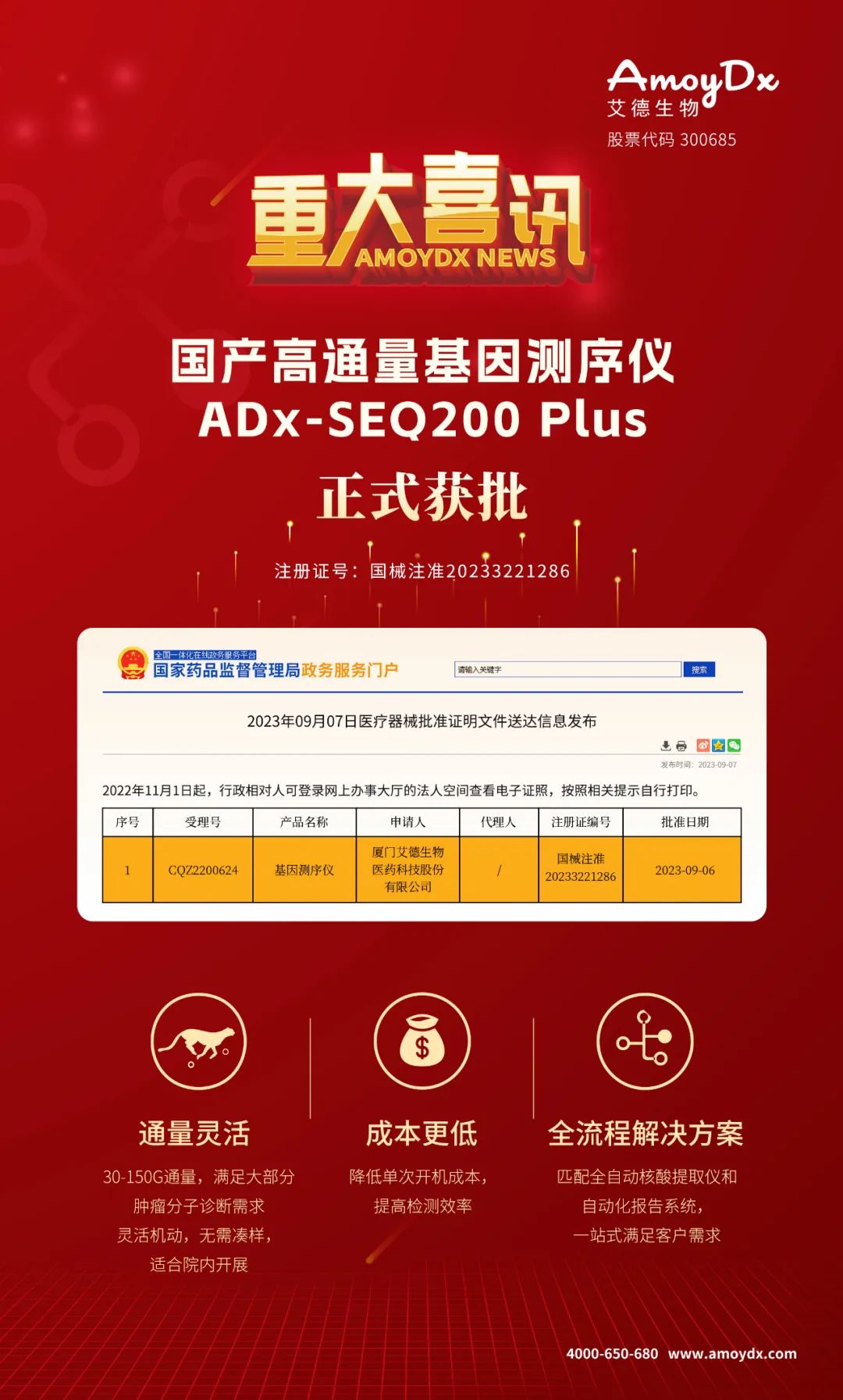 重大喜訊 | 艾德生物國(guó)產(chǎn)高通量基因測(cè)序儀ADx-SEQ200 Plus 正式獲批