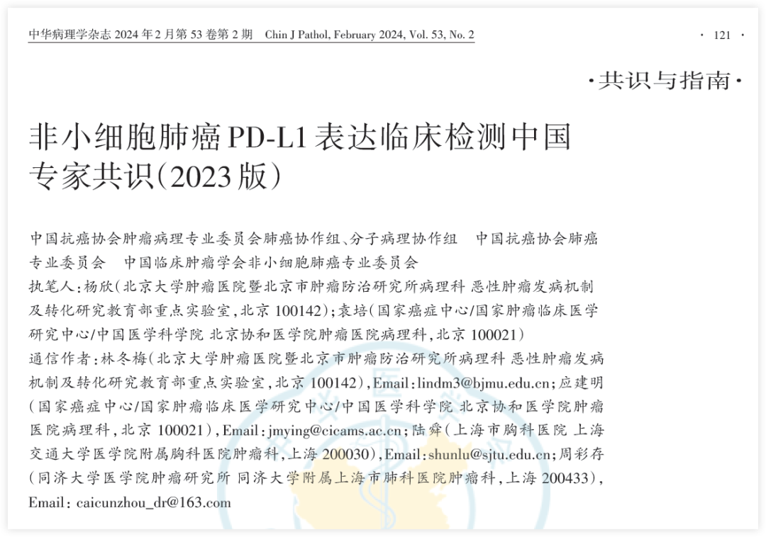 《中華病理學(xué)雜志》2023版PD-L1共識(shí)原文首頁圖片