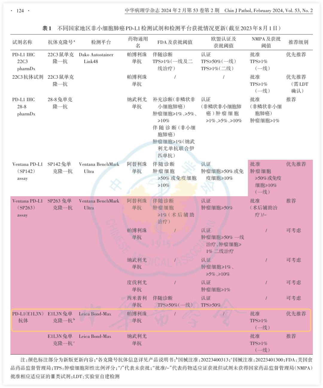 《中華病理學(xué)雜志》2023版PD-L1共識(shí)關(guān)于檢測試劑和平臺(tái)的推薦更新
