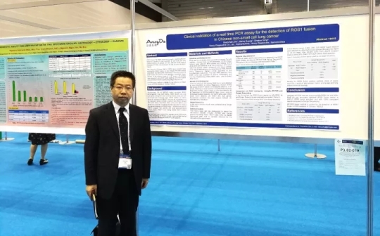 艾德生物作為國內(nèi)外腫瘤精準(zhǔn)醫(yī)學(xué)領(lǐng)軍企業(yè),攜新創(chuàng)的Super-ARMS®血液檢測技術(shù), EGFR/ALK/ROS1聯(lián)合檢測試劑盒,以及剛剛在日本獲批克唑替尼伴隨診斷試劑的ROS1檢測試劑盒亮相展會,獲得參會者的極大關(guān)注。與此同時,艾德生物ROS1檢測的中國研究數(shù)據(jù)也被選入大會推薦研究,艾德生物執(zhí)行副總經(jīng)理朱冠山博士受邀在大會海報專欄中對該數(shù)據(jù)進(jìn)行匯報,眾多國內(nèi)外專家學(xué)者仔細(xì)閱讀報告,踴躍提問并給予了極高的評價,獲得國際同行的廣泛認(rèn)可。