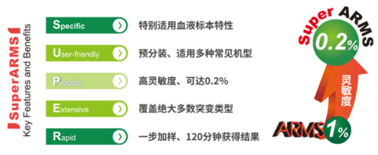Super-ARMS技術(shù)是艾德生物自主開(kāi)發(fā)的新一代血液基因突變檢測(cè)技術(shù),基于ADx-ARMS自主創(chuàng)新技術(shù)的革命性升級(jí),延續(xù)簡(jiǎn)便、快速、可及性強(qiáng)、判讀客觀等特點(diǎn),通過(guò)全新的引物設(shè)計(jì)思路及優(yōu)化的體系配方,實(shí)現(xiàn)靈敏度大幅提升至0.2%,更適合血漿ctDNA EGFR基因突變檢測(cè)。