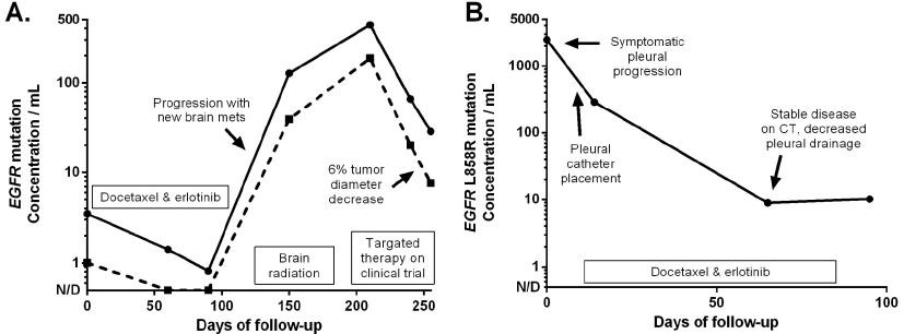圖2 血漿EGFR突變分型反映對(duì)治療的應(yīng)答