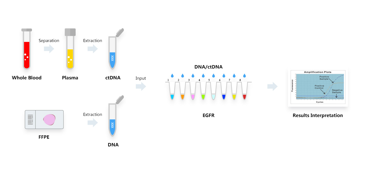 臨床上,部分晚期肺癌患者由于缺乏足夠的腫瘤組織或細(xì)胞學(xué)標(biāo)本而無法從EGFR-TKI治療中獲益。近年來,作為組織標(biāo)本的補(bǔ)充,血液樣本展示了巨大的臨床應(yīng)用潛力。同時(shí),與組織檢測(cè)相比,血漿檢測(cè)具有采集方便、無創(chuàng)、安全等優(yōu)勢(shì),更容易被受檢者所接收。